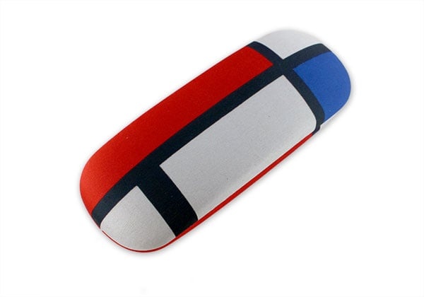 A sturdy glasses case for the safe storage of your glasses. This glasses case, with soft microfiber inside and outside, has a beautiful Mondrian print and a silver signature on the inside.