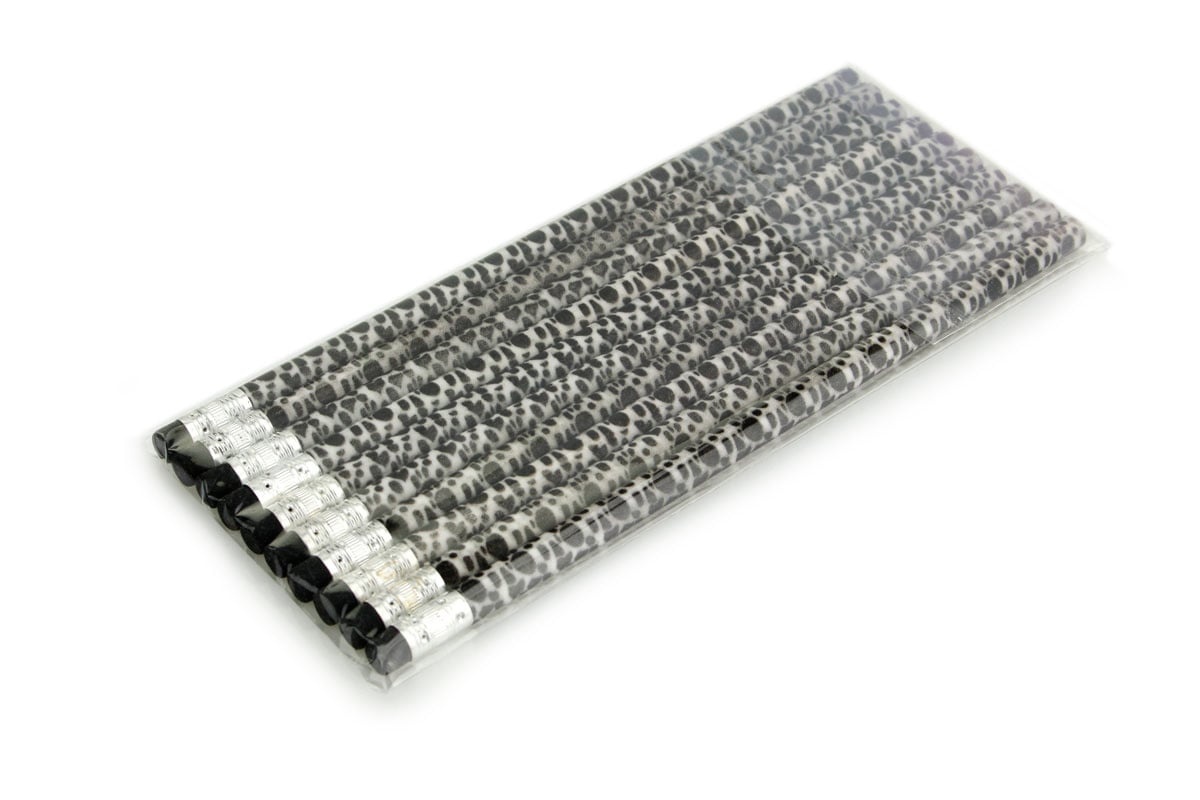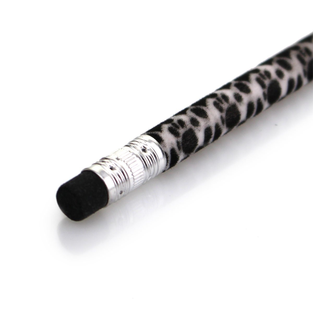 Velvet Pencil, Animal Skin pattern pencil, Leopard pencil. Grey HB pencil for writing and sketching with soft velvet Leopard pattern surface, and eraser on top.