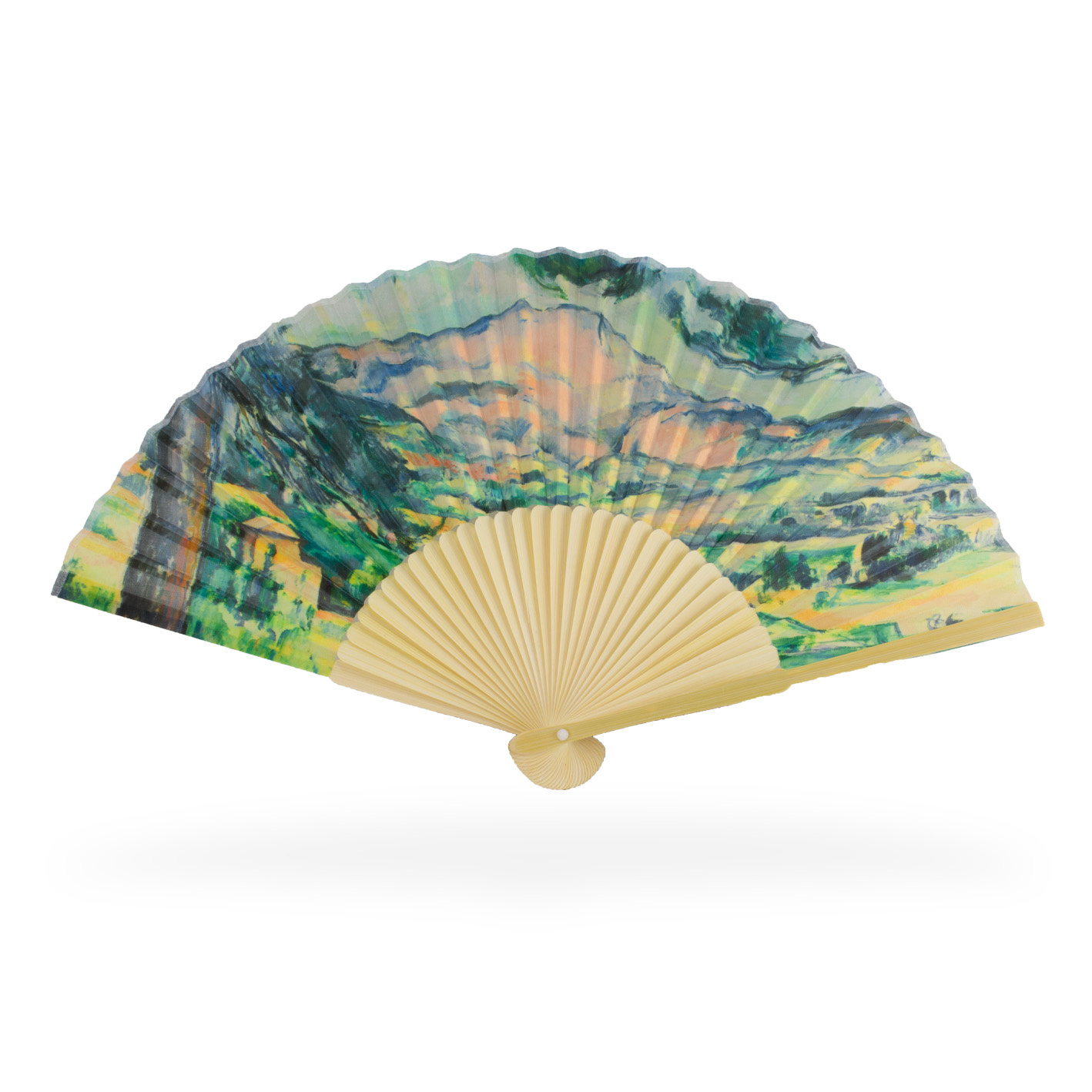 ¡Un buen ventilador de mano para disipar el peor calor! El ventilador está hecho de bambú duradero, con una impresión en tela.