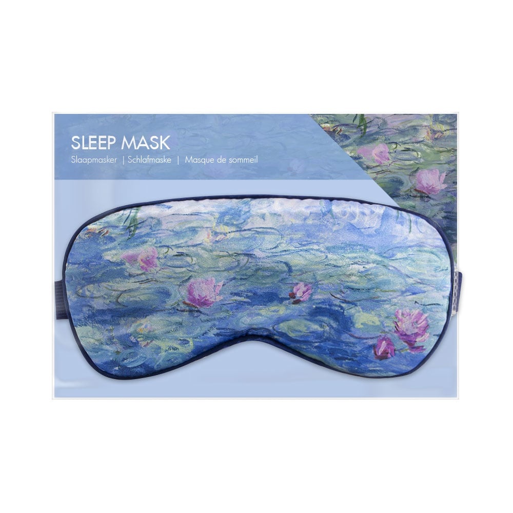 Una máscara de ojos opaca, con diadema ajustable y un acolchado suave, para una relajación total y un sueño reparador. Con una imagen de la famosa pintura de Monet: Nenúfares.