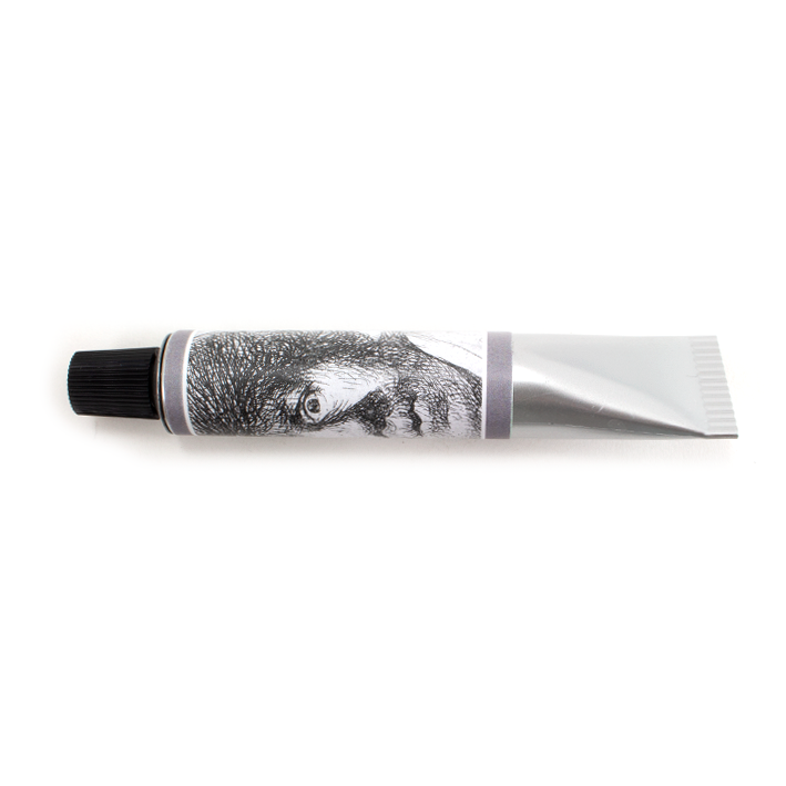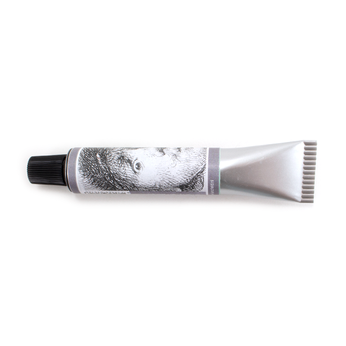 Este bolígrafo en forma de tubo de pintura tiene una etiqueta con una imagen del famoso grabado de Rembrandt van Rijn: autorretrato con mirada de sorpresa. Rijksmuseum de Ámsterdam El bolígrafo de tubo de pintura tiene un color de escritura azul.