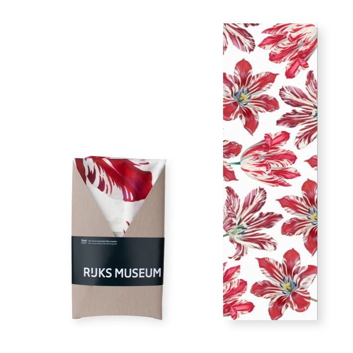 Una hermosa bufanda con un estampado muy refinado y colores brillantes e intensos. La bufanda está hecha de seda artificial (100% poliéster). La bufanda es agradable de usar y se cae muy bien. La bufanda se puede lavar a mano con agua fría.