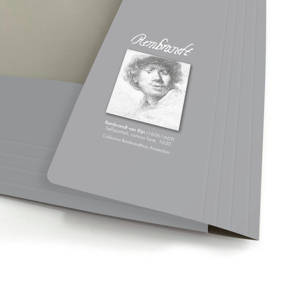 Carpeta portadocumentos con banda elástica, Rembrandt, cara curiosa