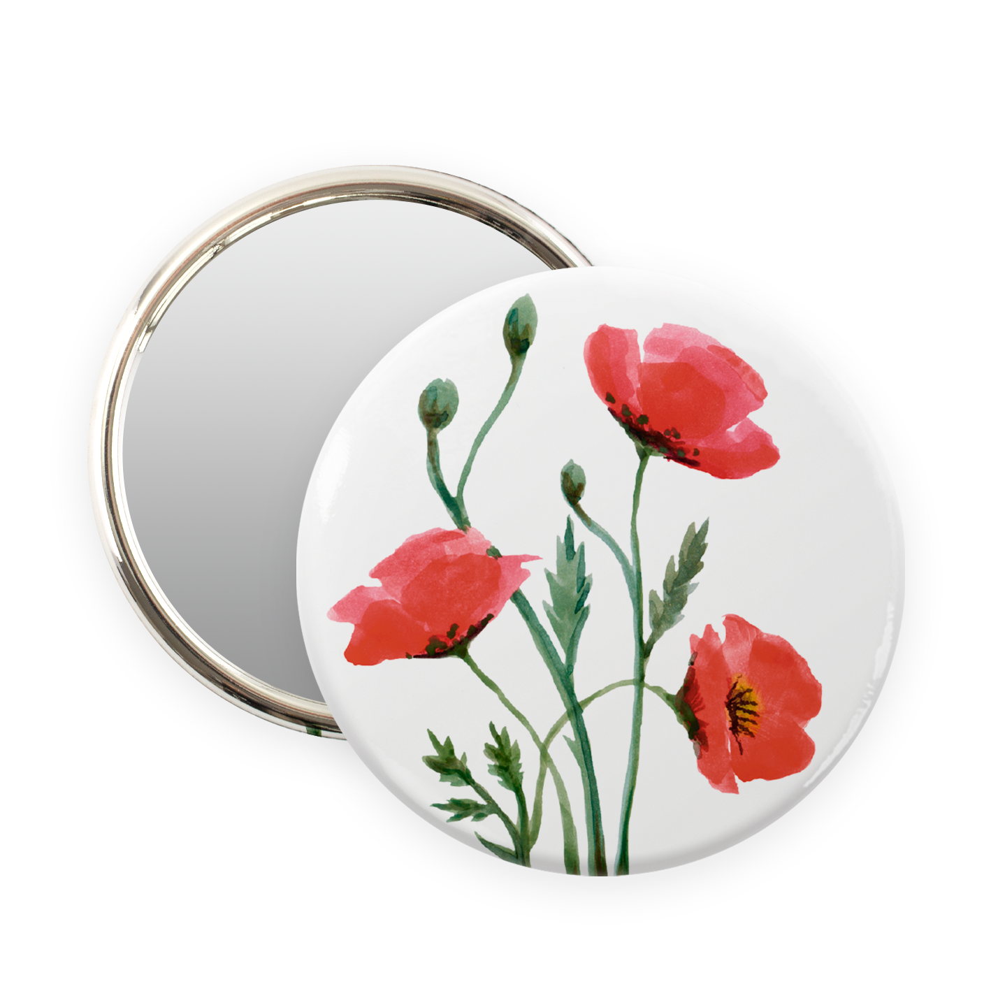 Espejo de bolsillo, Ø 80 mm, Amapolas