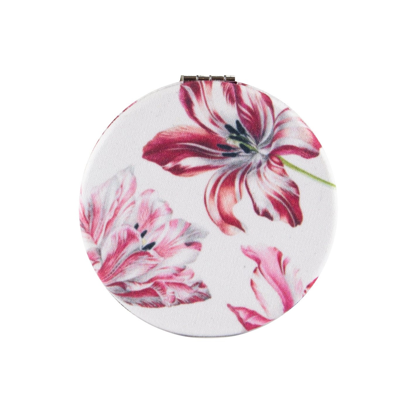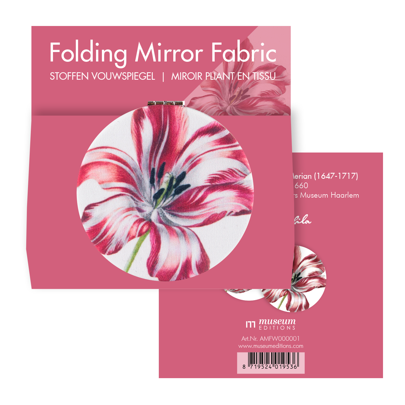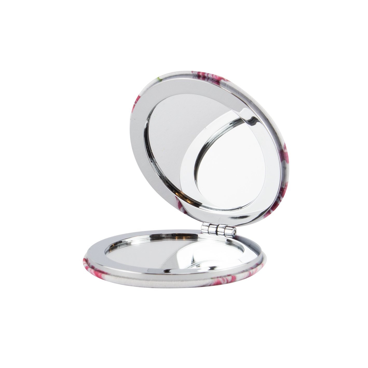 Un espejo plegable de alta calidad bellamente ejecutado, con 2 espejos: un espejo de aumento y un espejo normal. El espejo está hecho de acero inoxidable y cubierto con tela de microfibra con una impresión de alta calidad.