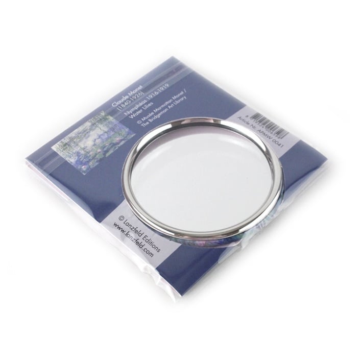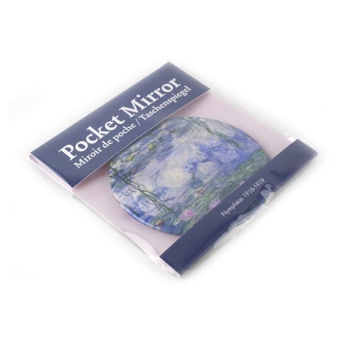 Espejo redondo, útil para llevar con usted para actualizar el maquillaje, por ejemplo. Este espejo de bolsillo presenta una bella impresión de la obra maestra de Monet.