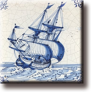 Imán de nevera, azulejo azul de Delft, barco mercante