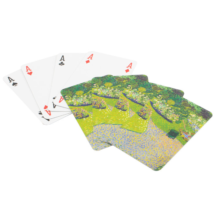 Un juego de cartas con la imagen de Iglesia en Auvers-sur-Oise de Vincent van Gogh. 56 cartas, cartas Bridge
