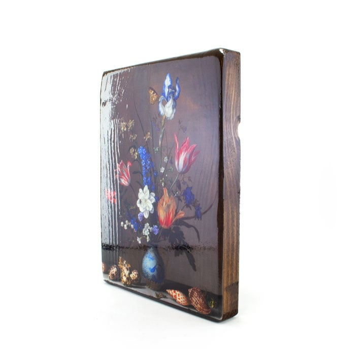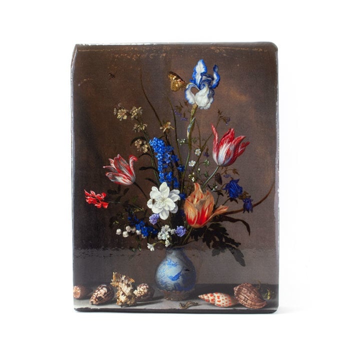 Maestros-en-madera, Jarrón azul de Delft con flores y conchas, Balthasar vd Ast, 260 x 195mm