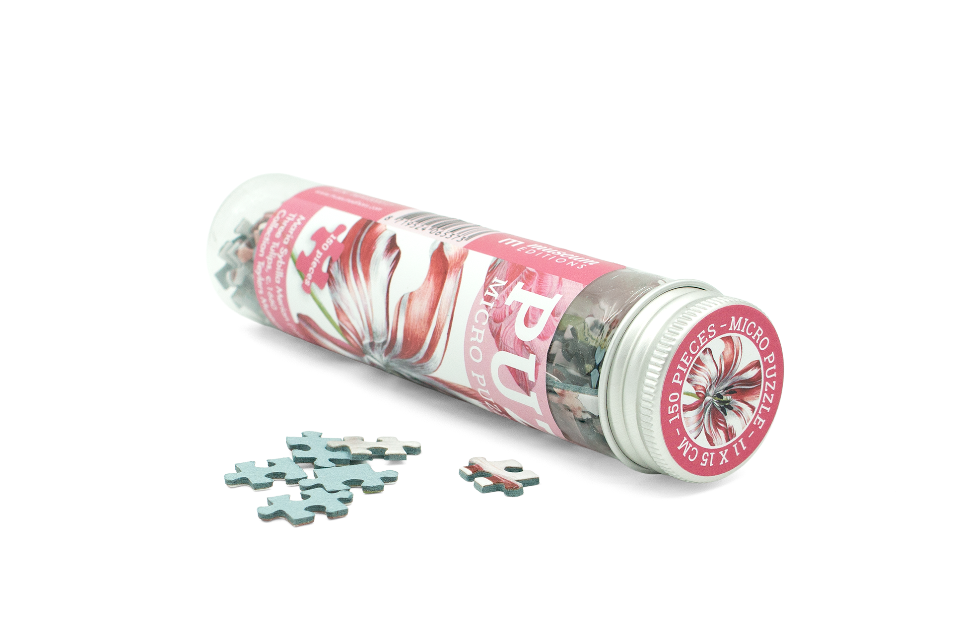 Minirompecabezas del Tulipanes, Maria Sibylla Merian Este rompecabezas de 150 piezas se presenta en un tubo con tapa de rosca. Dimensiones: 10 x 15 cm Marca: Museum-merchandise.com