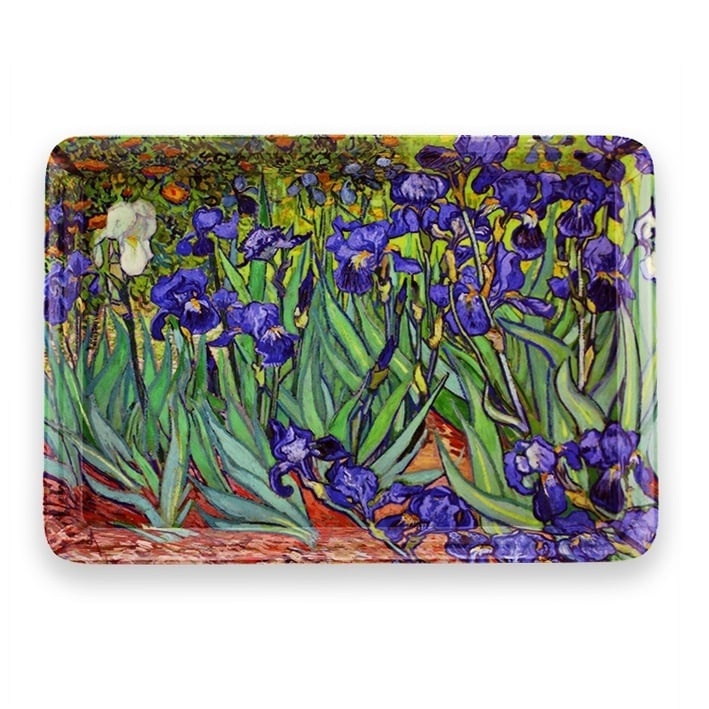 Una bandeja con una impresión de alta calidad de 'Iris', una pintura bien conocida del maestro pintor Vincent van Gogh. La bandeja está hecha de melamina y, por lo tanto, apta para lavavajillas, pero no es adecuada para su uso en el microondas.