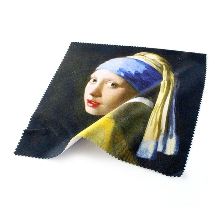Paño de gafas, 15 x 15 cm, niña con arete de perla