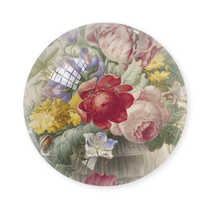 Este pisapapeles está decorado con su impresión de calidad hermosa de Flower Still Life en florero de vidrio de Henstenburg que cuelga en el Rijksmuseum. El pisapapeles redondo de vidrio convexo viene en una elegante caja de regalo negra con estampado.