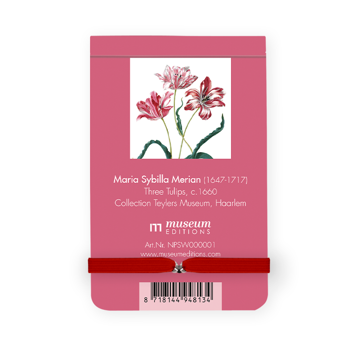 Handy! Las notas de bolsillo son ideales para escribir rápidamente un mensaje o mantener una lista. Estas notas de bolsillo tienen una bella impresión de la obra maestra de Merian, Tres tulipanes. Las notas de bolsillo no tienen forro en el interior.