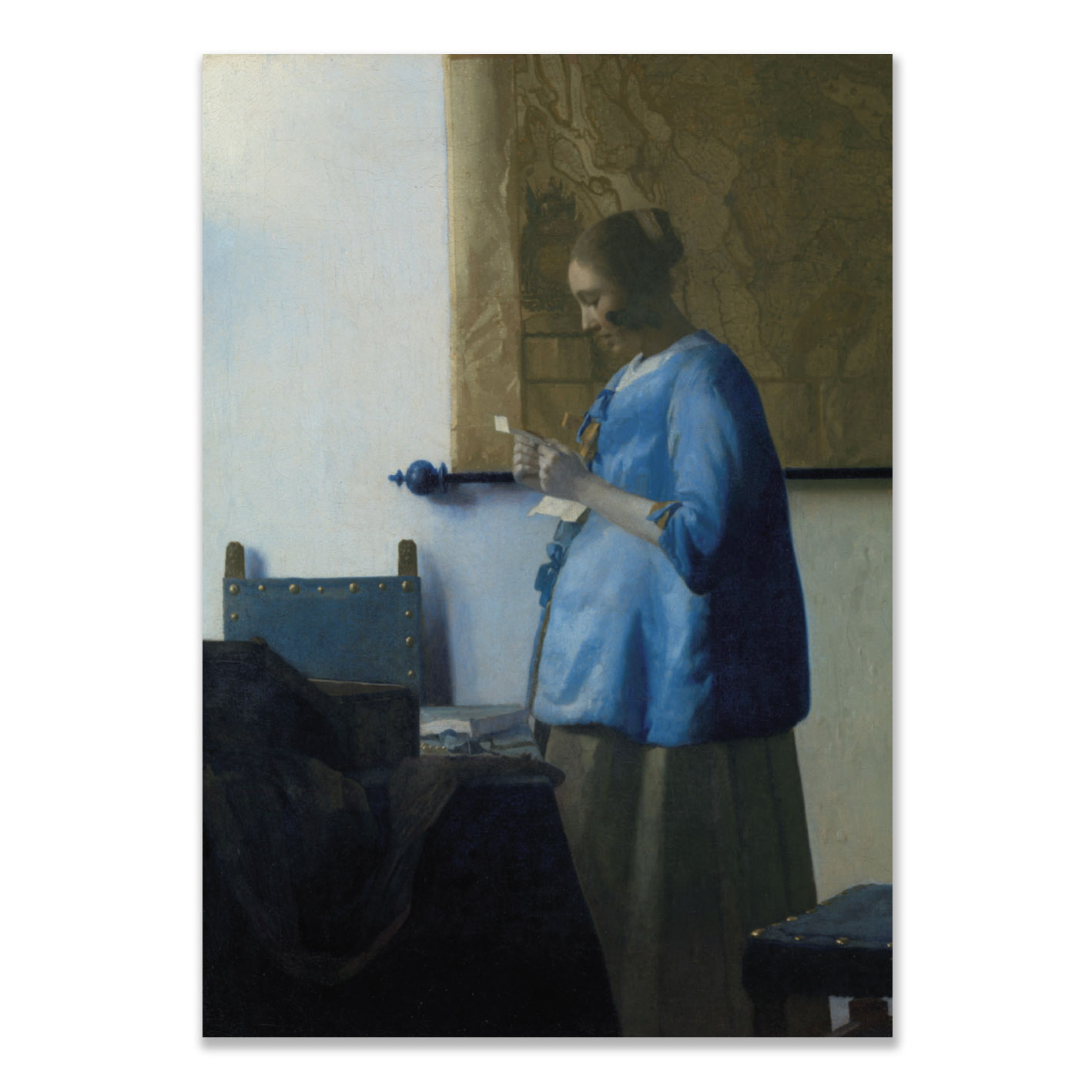 Postal, 10 x 15 cm, Mujer con letra, Vermeer