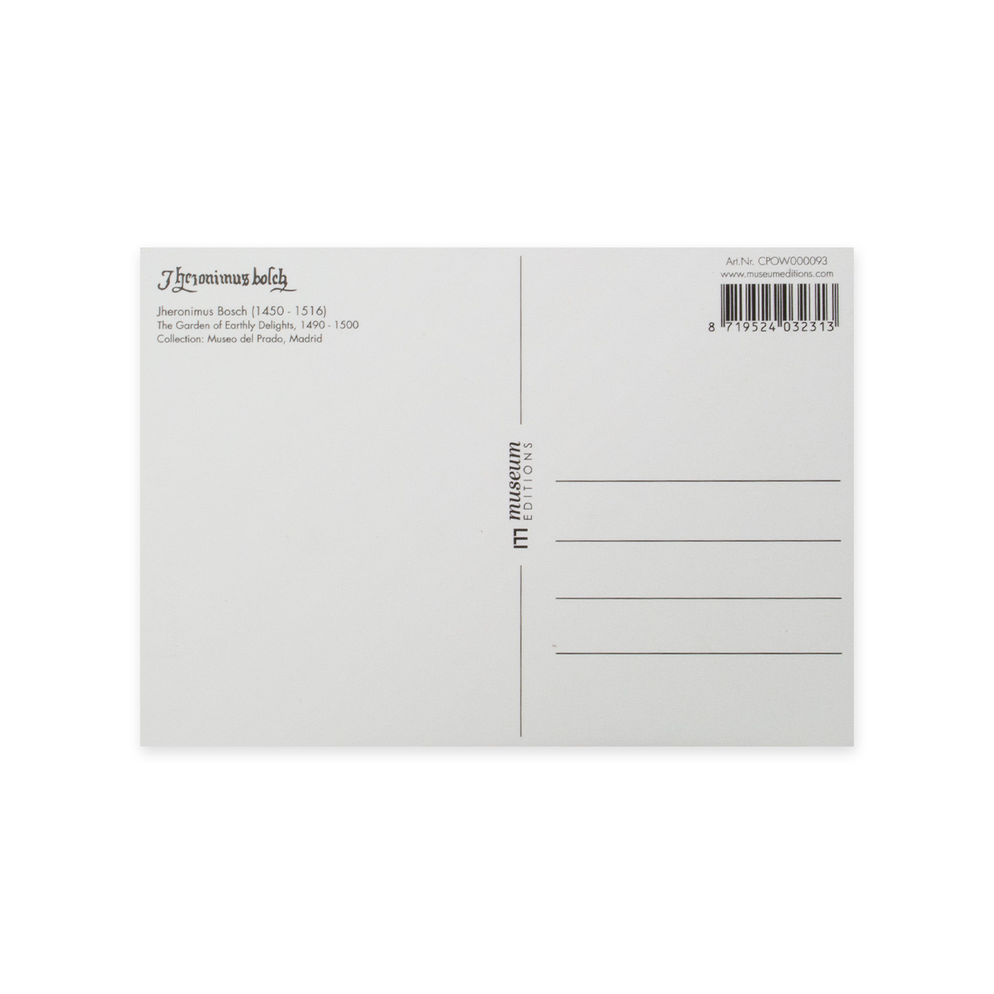 Postal, 10x15 cm, Jheronimus Bosch, Jardín de las delicias 4