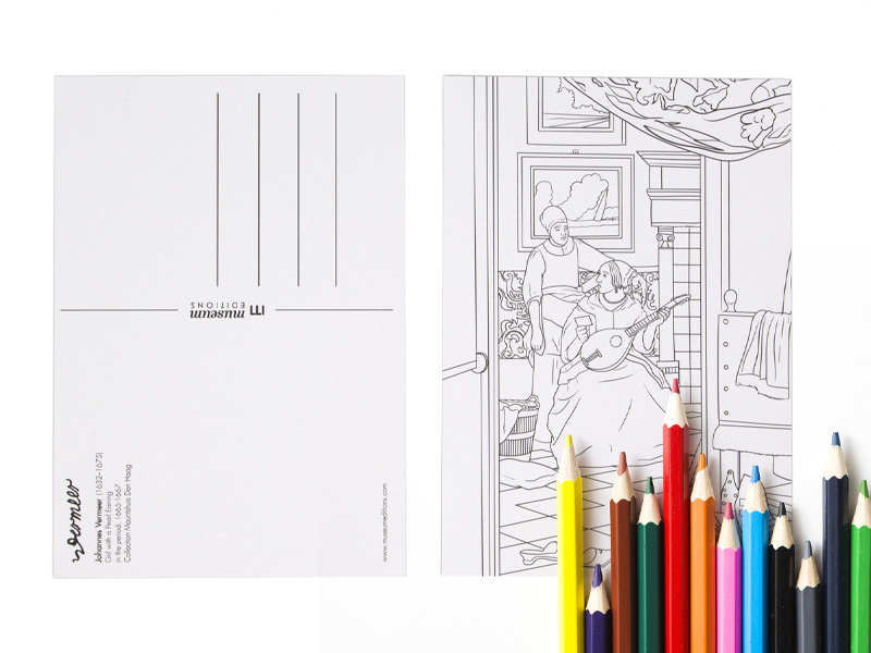 Postales para colorear, juego de 3, Las muchachas de Vermeer