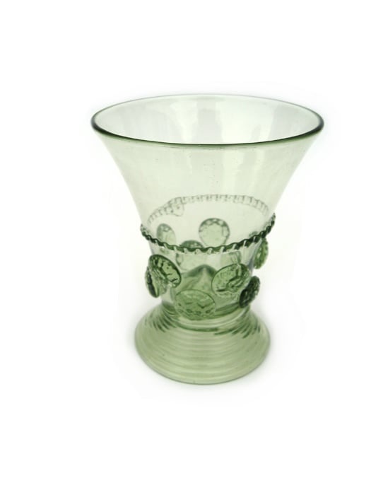 Handmade replica of 17th century glass. Height 9 cm, Colour: green