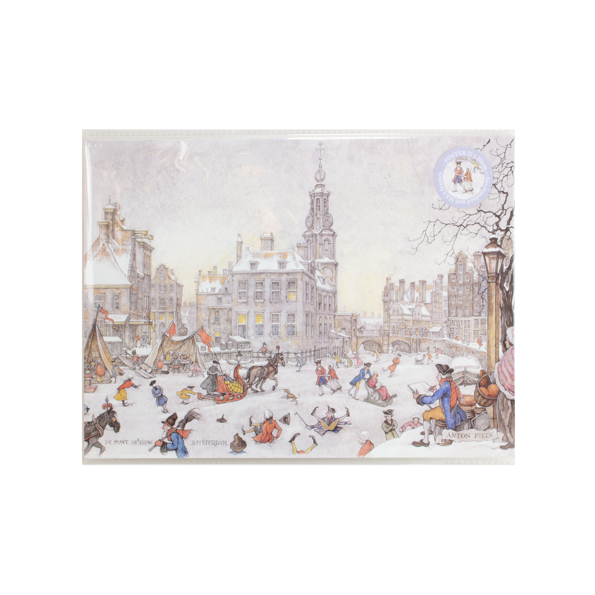 Reproduction , Mini A4, Anton Pieck, Scène de glace d'Amsterdam