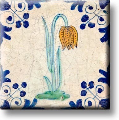 Aimant pour réfrigérateur, carrelage bleu de Delft, fleur de vanneau