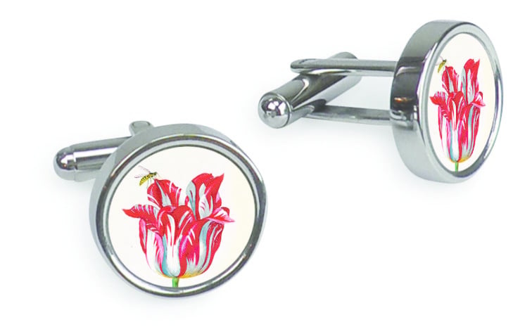 Ces boutons de manchette ronds comportent une peinture bien connue de Jacob Marrel: tulipe avec abeille. Les boutons de manchette ronds sont en acier inoxydable poli et sont livrés dans un luxueux coffret cadeau.