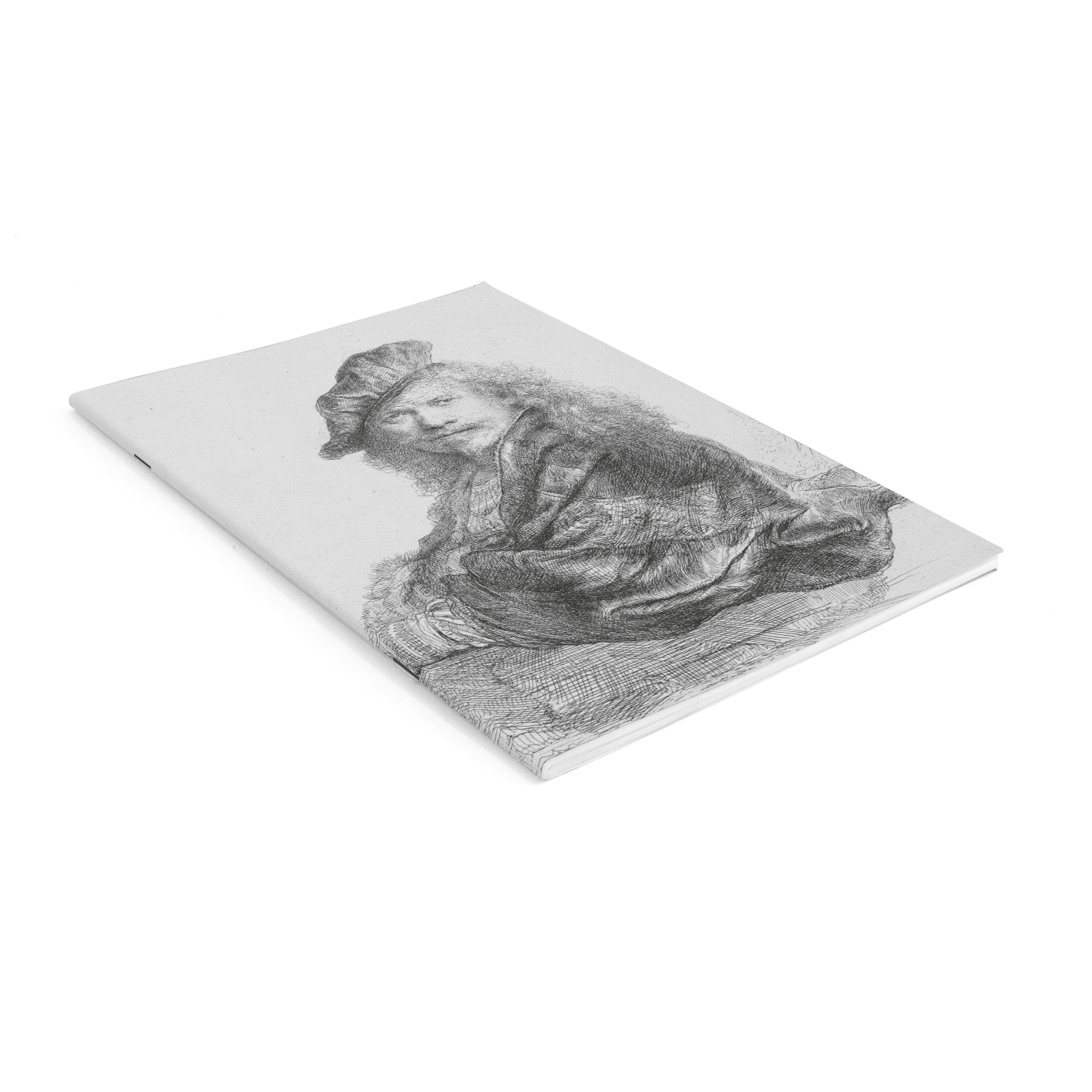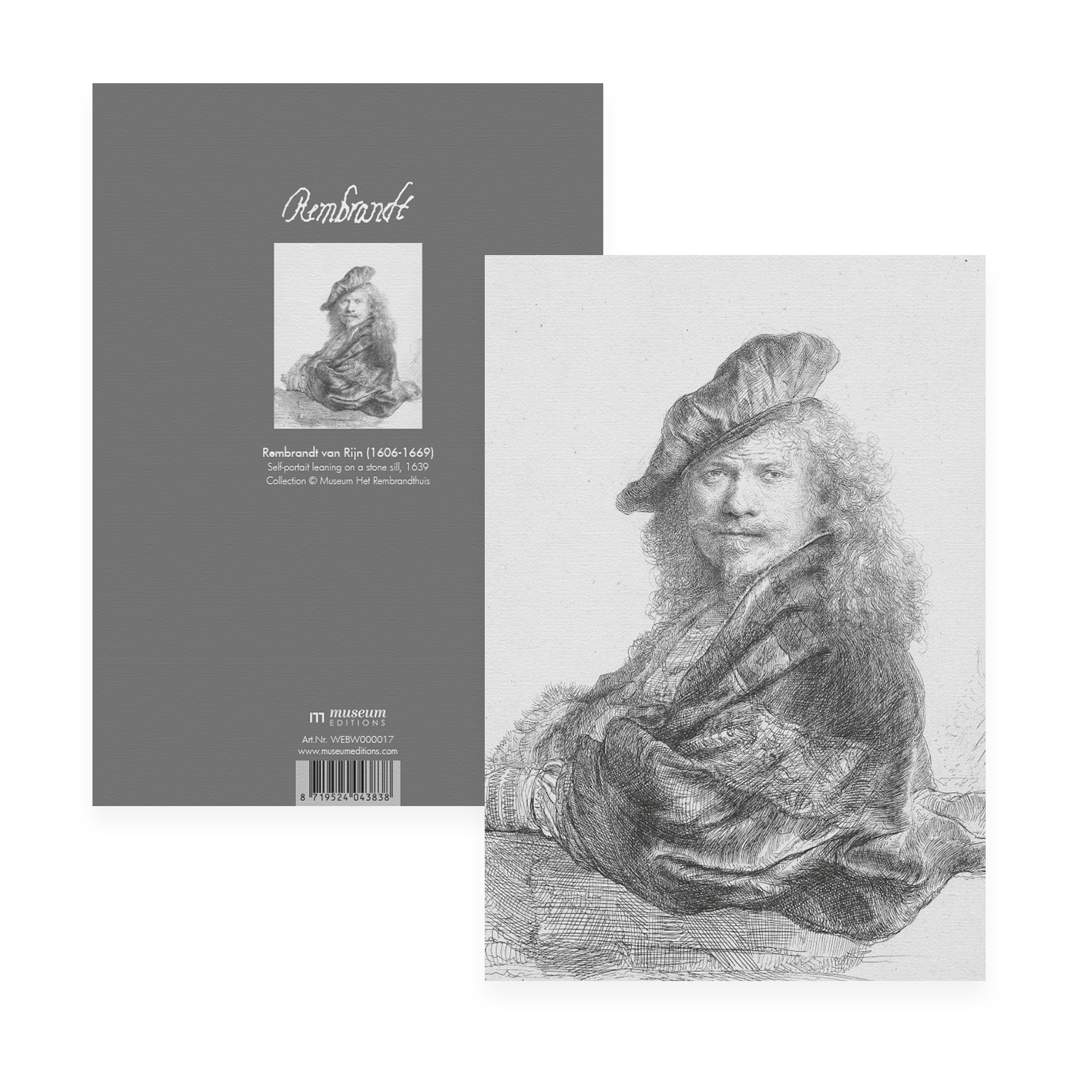Écriture, A5,autoportrait s'appuyant sur un rebord de pierre, Rembrandt