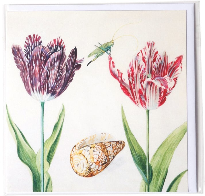 Double carte, Deux tulipes avec coquille et insecte (cricket), Marrel