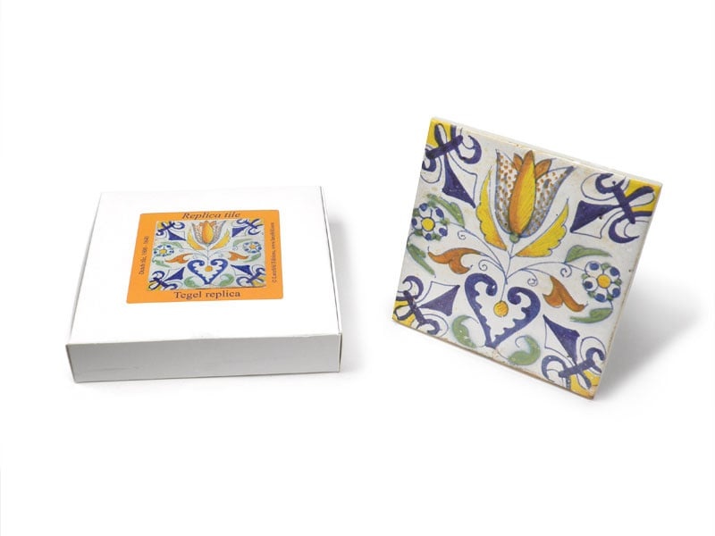 Carrelage réplique, bleu de Delft, tulipe avec coeur 13x13 cm