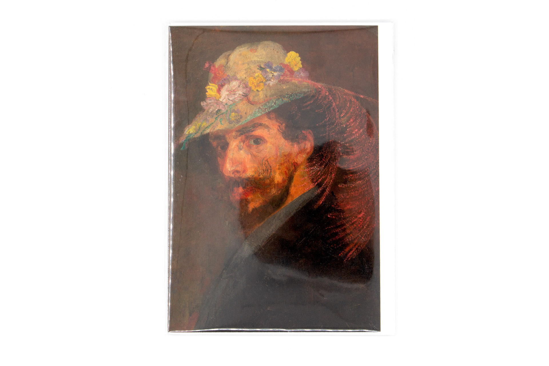 Carte double avec enveloppe, James Ensor, Autoportrait au capuchon fleuri