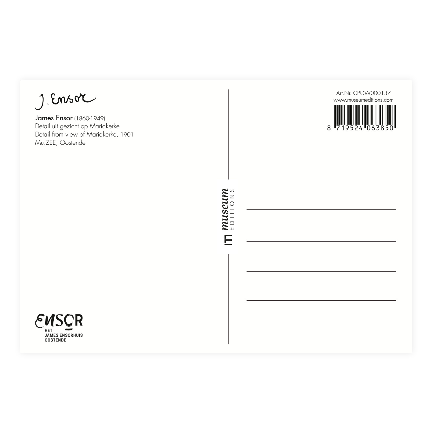 Carte postale, 10 x 15 cm, James Ensor, Vue de Mariakerke