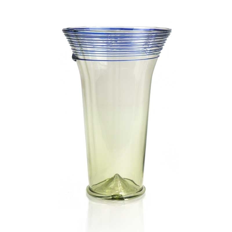 Handmade replica of 17th century glass. Height 12,5 cm, Glass colour: green. Top details in blue.