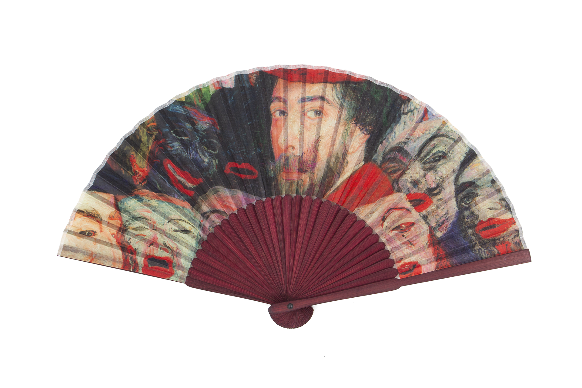 Éventail,James Ensor , Portrait avec masques