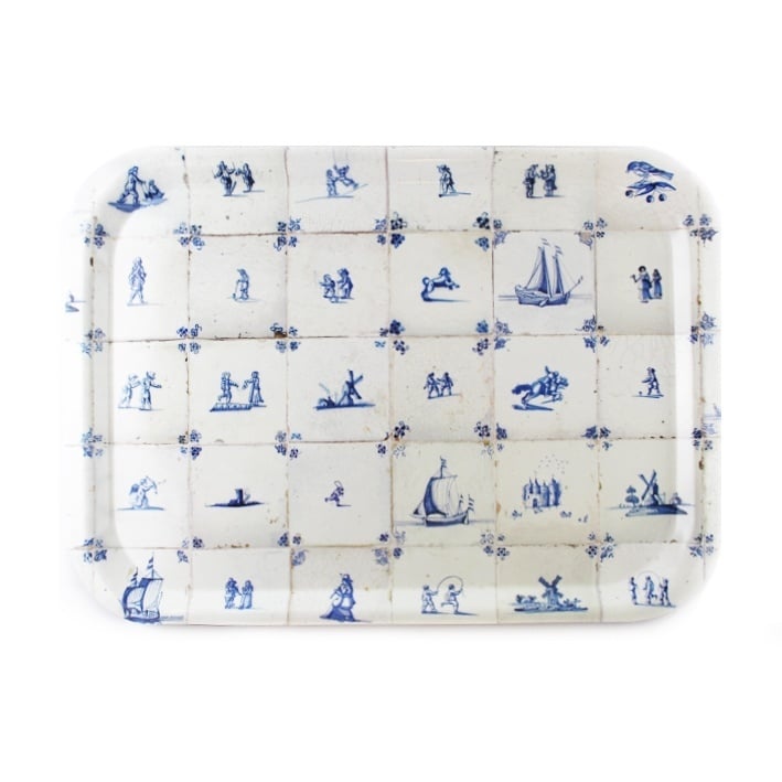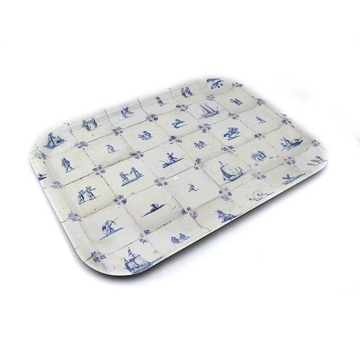 Plateau de service Grand stratifié, carreaux bleu Delft