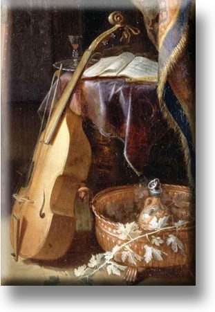 Rechteckiger Kühlschrankmagnet. Geige mit Noten, Musik