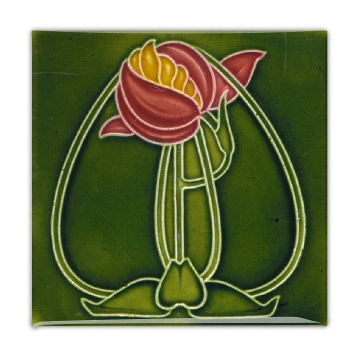 Fridge Magnet, Art Nouveau Tile, Flower, round shaped
