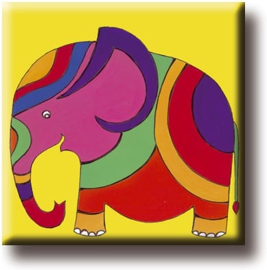 Square solid fridgemagnet: Elephant, illustrated by H. Simon