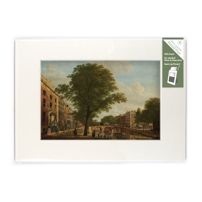 View on the Herengracht, Hendrik Keun (1738 - 1787). Matted print, large: Size: 297 x 210 x 4 mm, View size picture: 208 x 137 mm, insert size picture: 230 x 160 mm Material: Front board: Crystal white matt board. Backing board and stand: Black Kraft.
