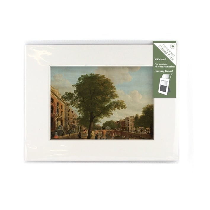 View on the Herengracht, Hendrik Keun (1738 - 1787). Matted print, medium Size: 40 x 180 x 4 mm, View size: 162 x 114 mm, Insert size: 168 x 120 mm Material: Front board: Crystal white matt board. Backing board and stand: Black Kraft.