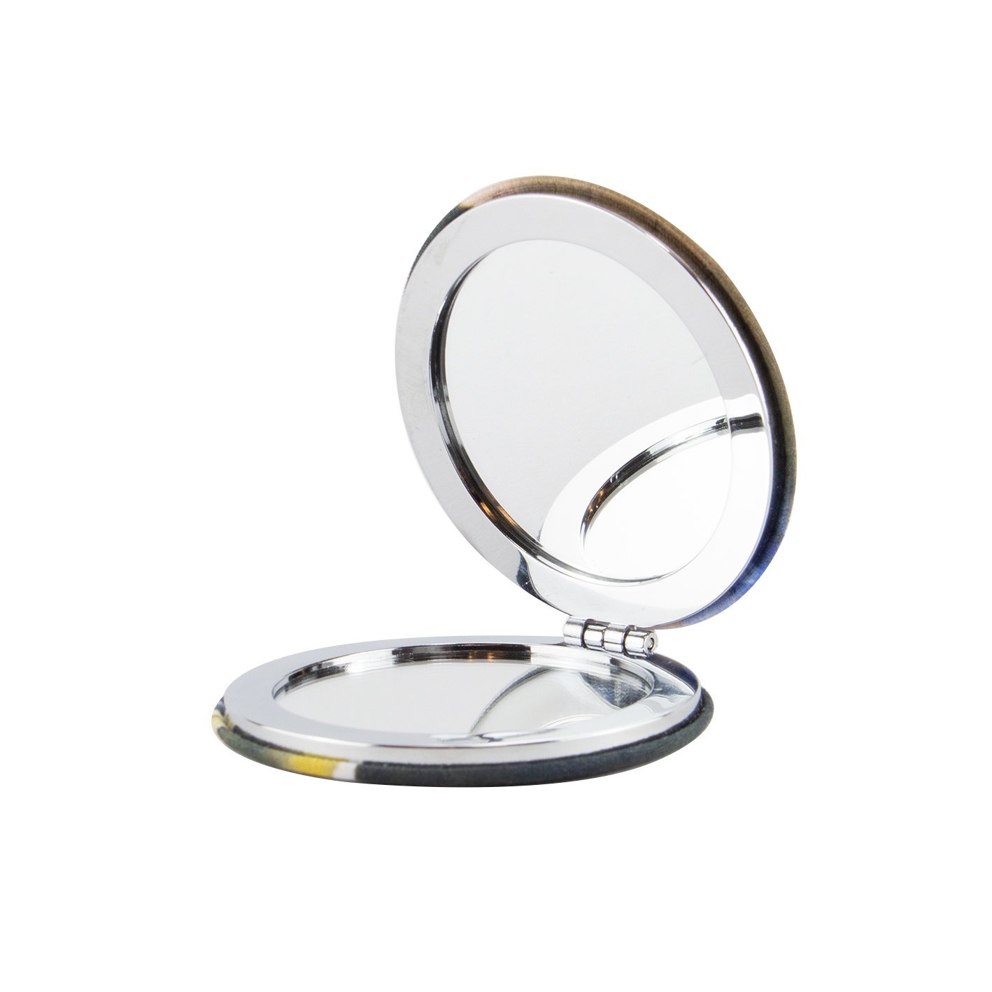 Un miroir pliant de haute qualité magnifiquement exécuté, avec 2 miroirs: un miroir grossissant et un miroir normal. Le miroir est en acier inoxydable et recouvert d'un tissu en microfibre avec une impression de haute qualité.