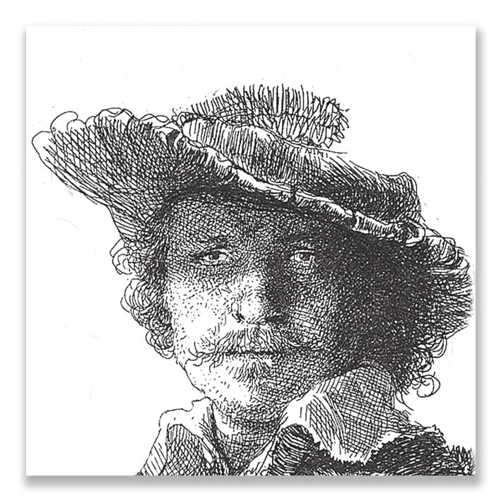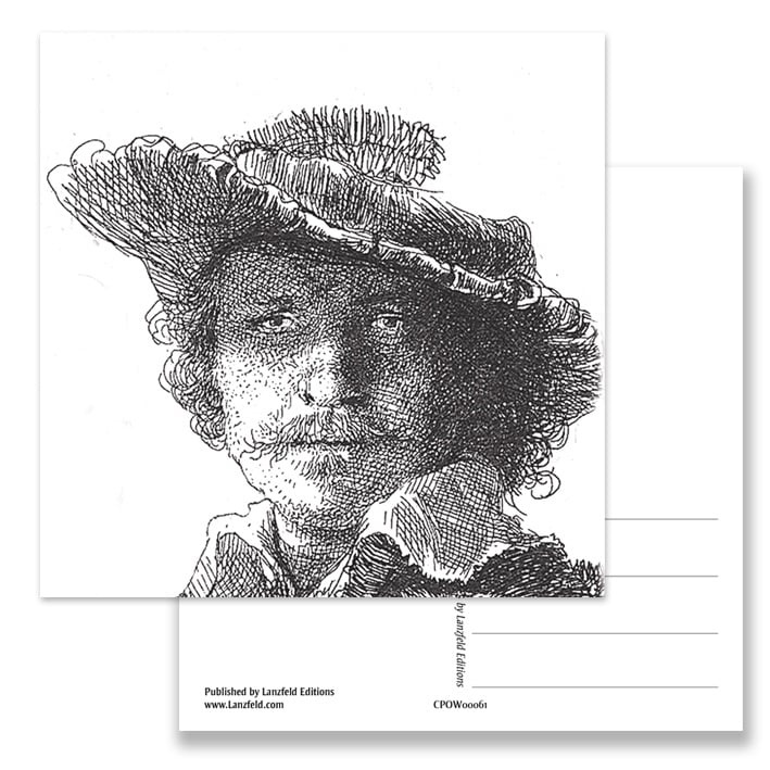 Postcard, Rembrandt, Self portrait without Saskia, Etch, 1636