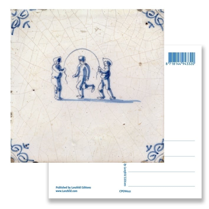 Postcard, Delftblue Tile with Kids skipping rope