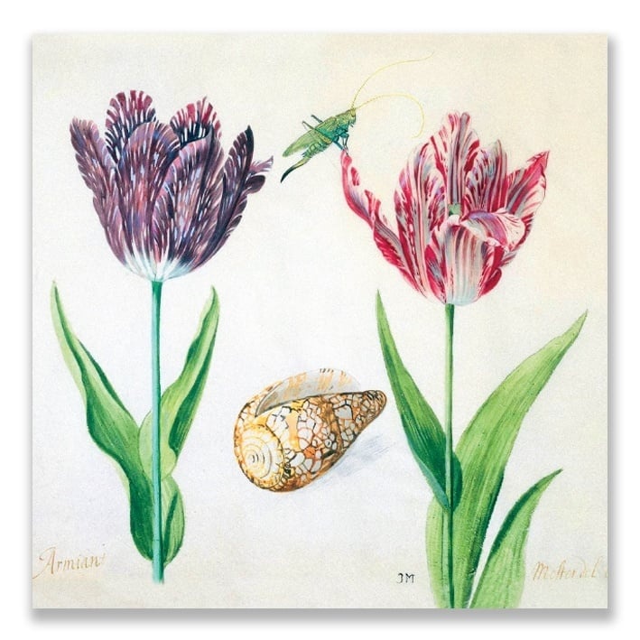 Postcard, Tulips, Shell and Insect, Jakob Marrel (1613 - 1681)