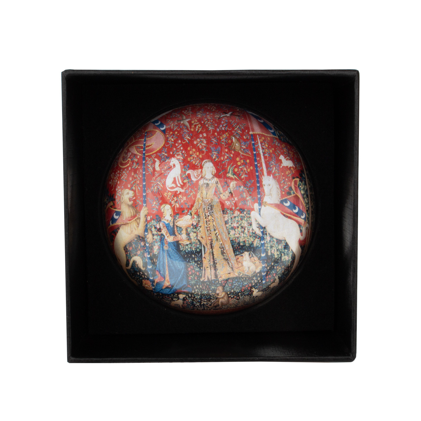 Presse-papier rond (presse papier) en boîte cadeau noire, 300 grammes. Coffret noir: 100 x 100 x 50 mm