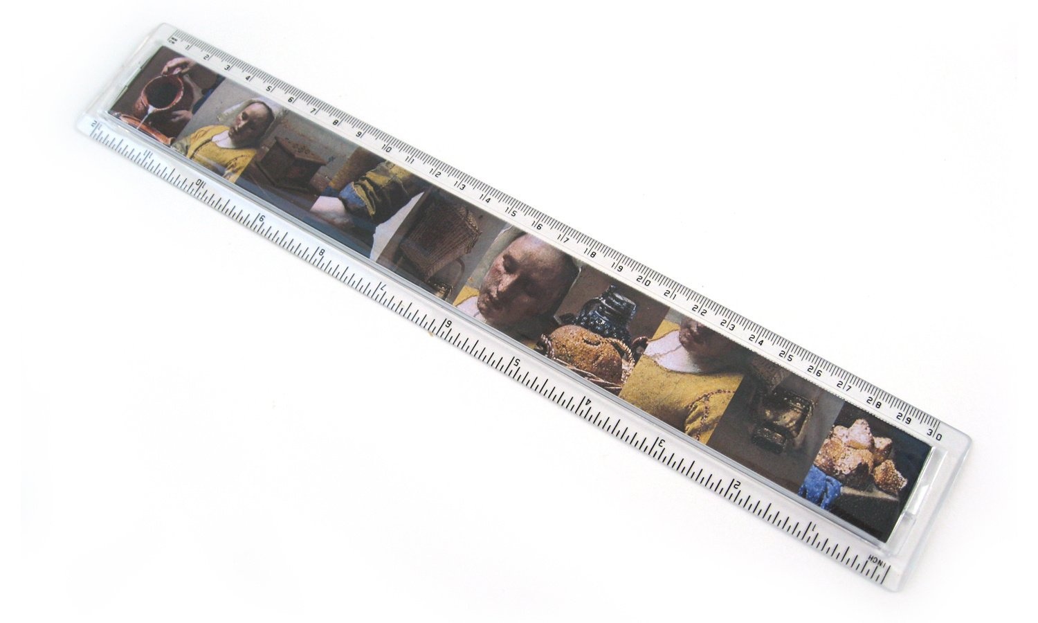 Toujours à portée de main, cette règle! Avec une impression de «La laitière», l'une des peintures les plus célèbres de Johannes Vermeer. La règle peut être lue en centimètres (30) et en pouces (12)