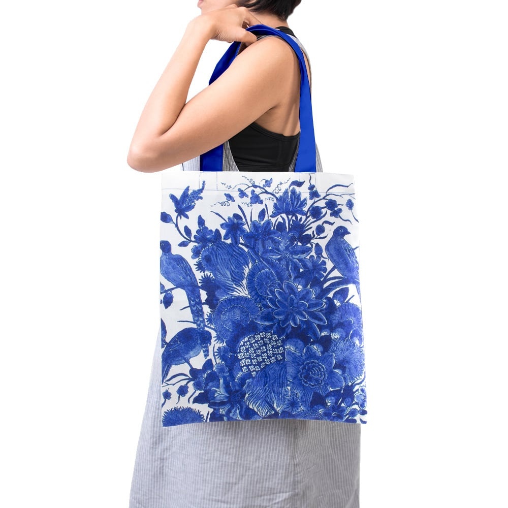 Sac en coton, avec doublure, Oiseaux bleus de Delft