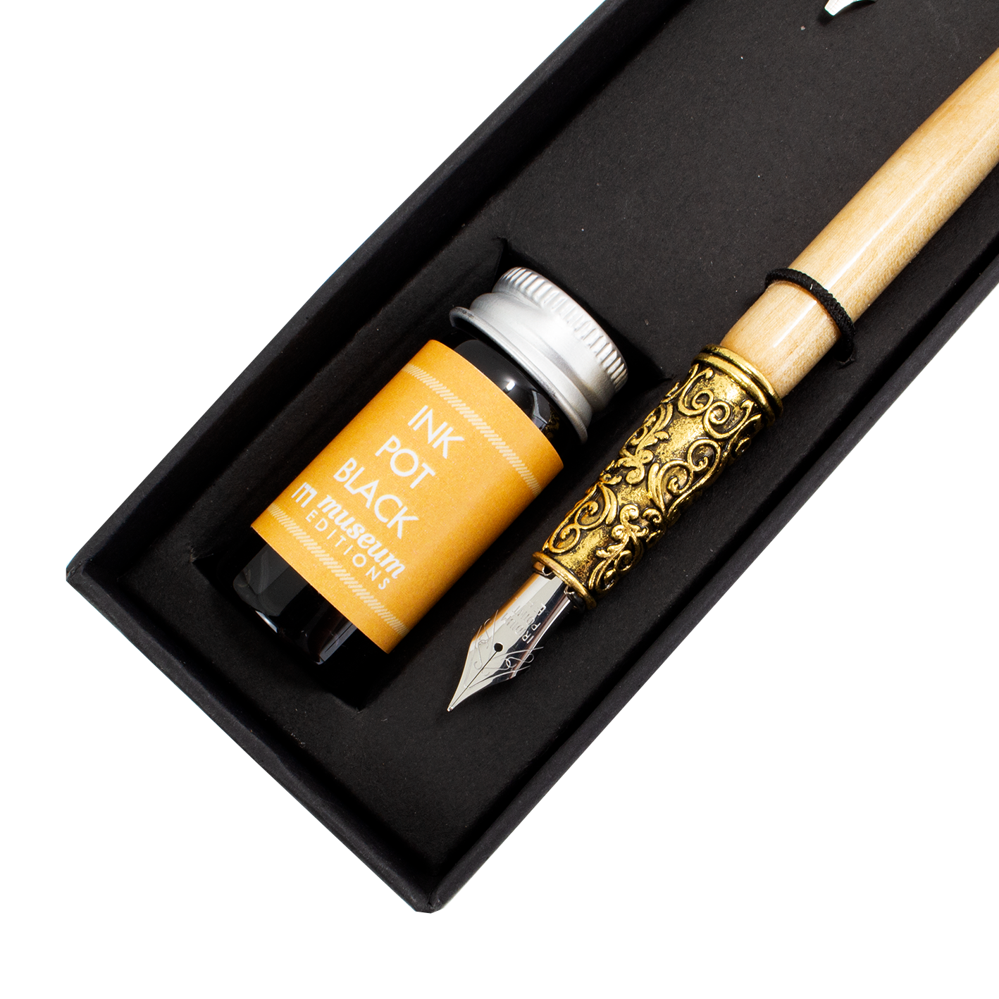 Set d'écriture avec 3 plumes et encrier