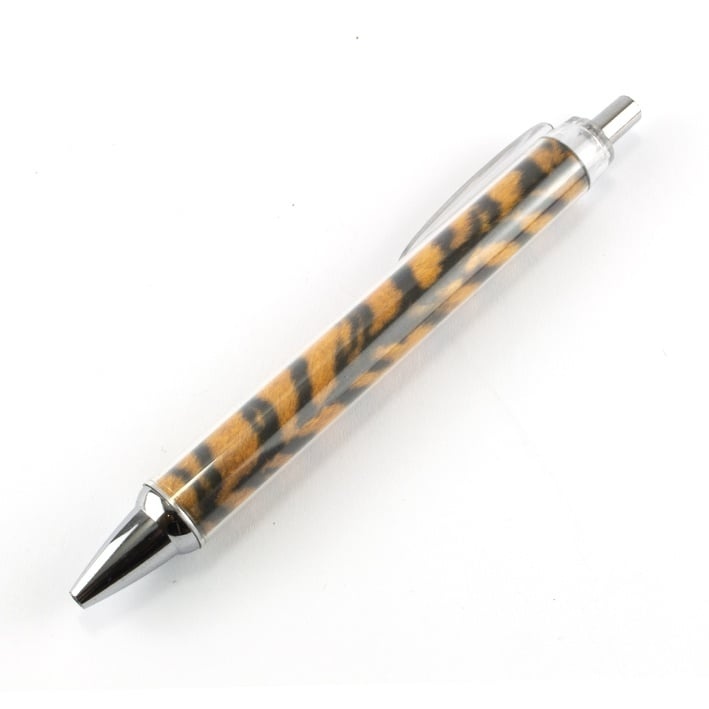 Un tigre, dangereux pour la vie mais pas heureux comme un stylo. L'impression est incrustée derrière une couche transparente, en écrivant la couleur; bleu.