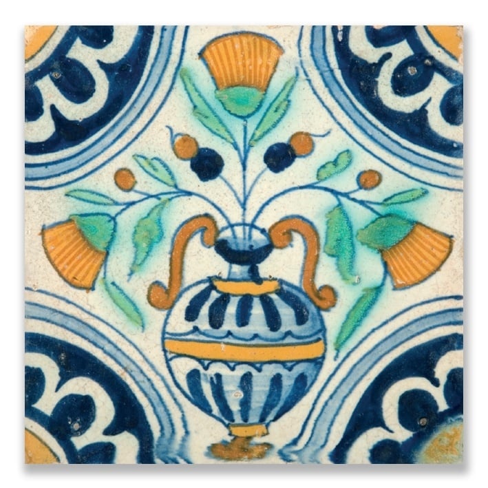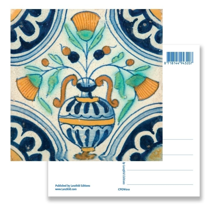 Ansichtkaart, Delfts blauwe tegel met Bloemenvaas, c. 1650