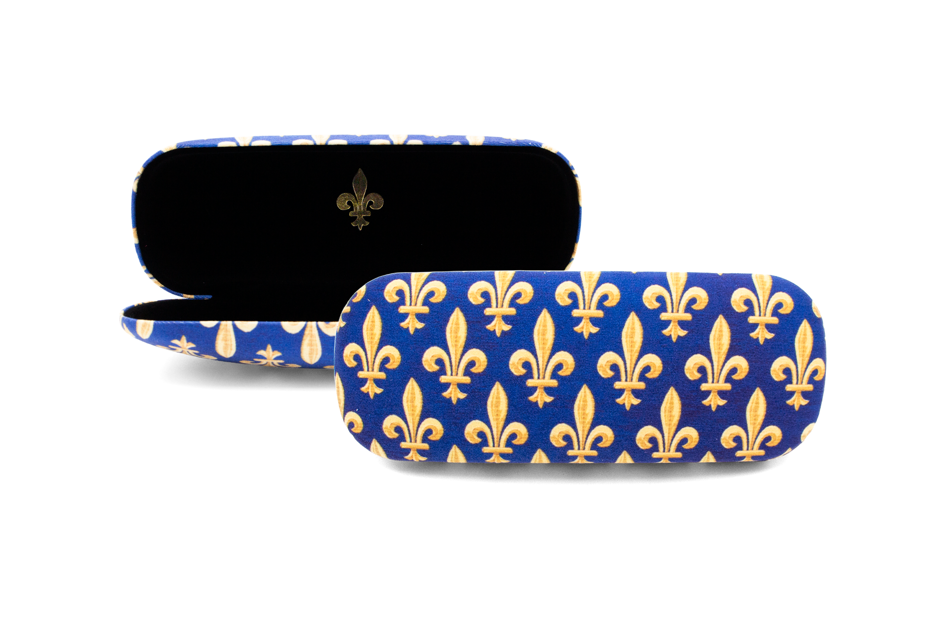 Een stevige brillenkoker voor het veilig opbergen van uw bril. Deze brillenkoker, met zachte microfiber binnen- en buitenzijde, heeft een prachtige afdruk van fleur de lis / Franse lelie.