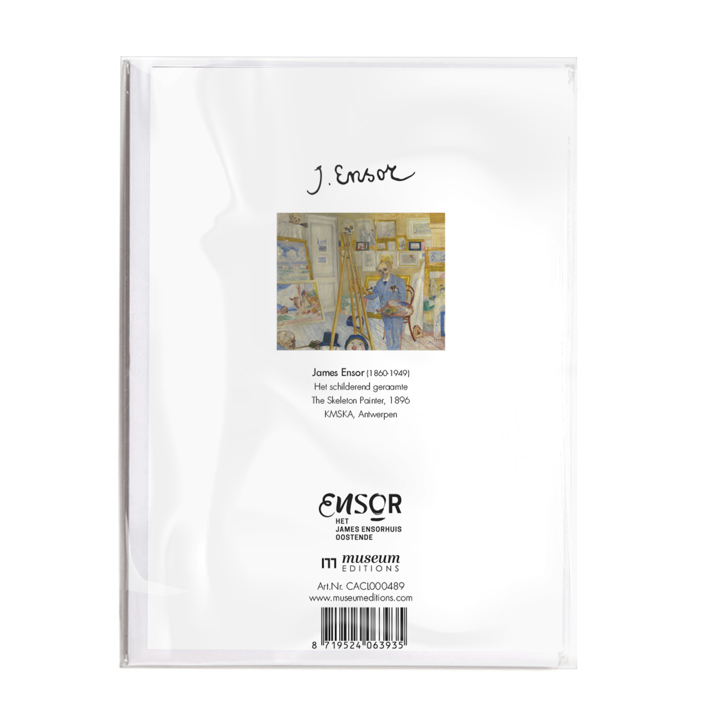 Dubbele kaart met envelop, James Ensor, Skeletschilder
